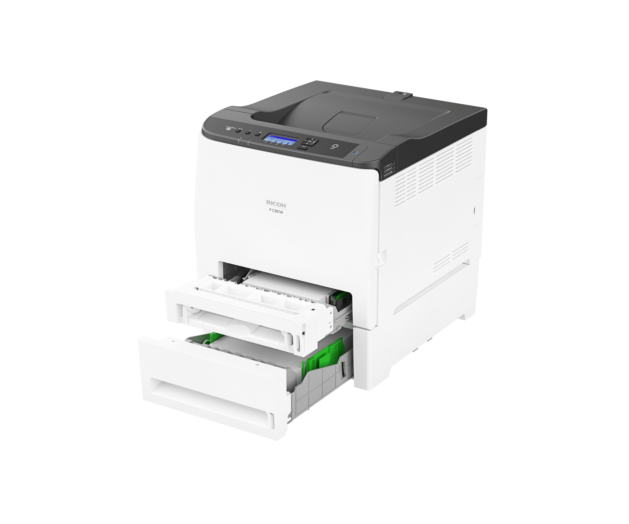 Ricohs P C300W er en farveprinter, der er ideel til et lille kontor eller arbejdsgruppe, der har brug for en effektiv farveprinter, der ikke fylder alverden. Udover at printe kan P C300W også levere hurtige scanninger med en enkelt gennemkørelse.