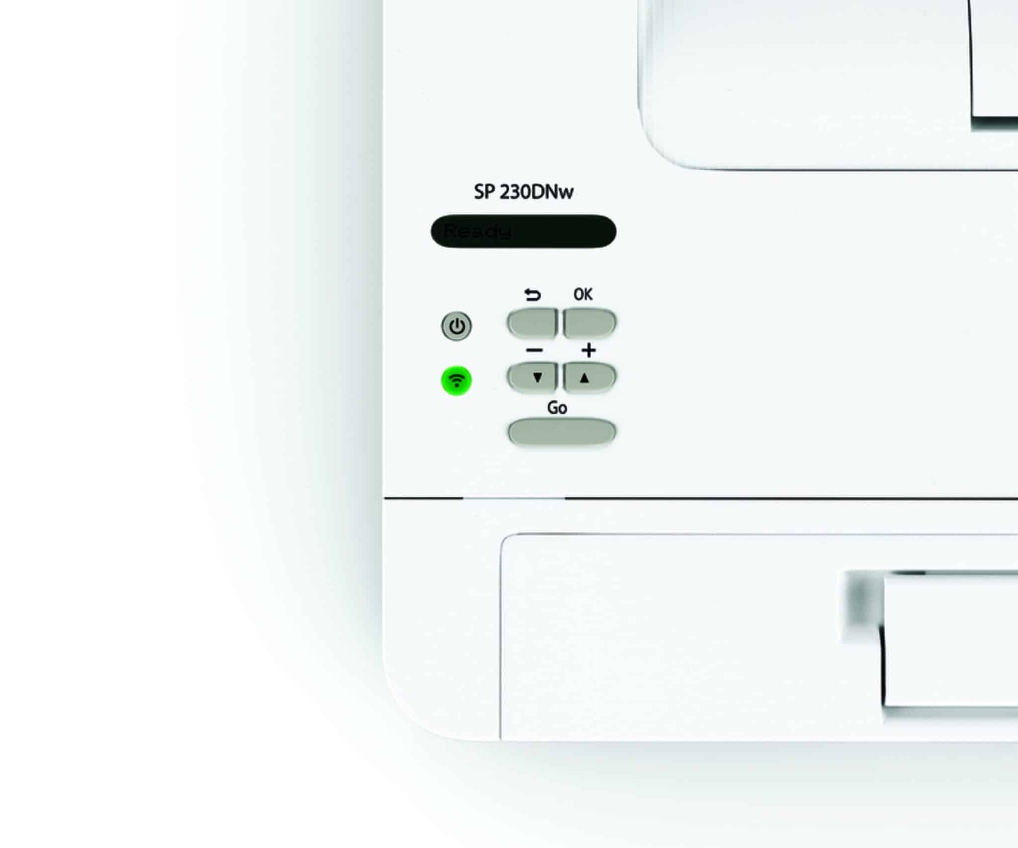 SP 230SFNw er en kompakt designet sort/hvid A4 multifunktionsprinter. Den er ideel til kontorer med et mellemstort printbehov og begrænset plads.